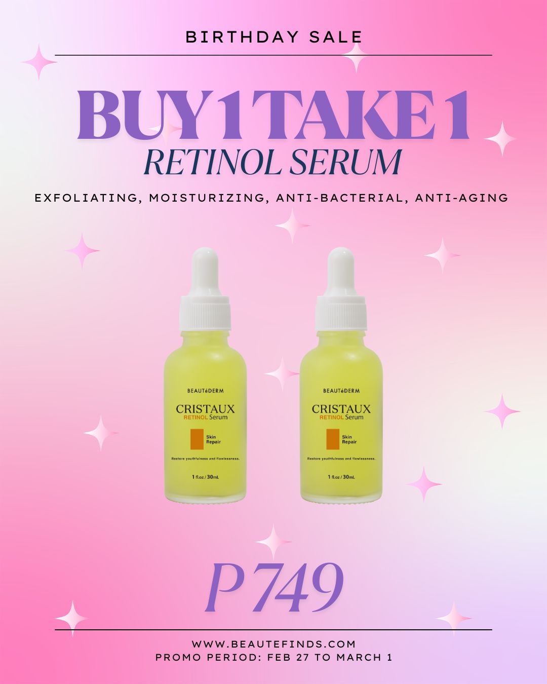 It can take time for your skin to get used to a retinoid. Start using Cristaux Retinol Serum Skin Repair Serum by applying it twice a week. As your skin adjusts, you can work your way up to using it nightly. If your skin gets red, dry, or flaky, you may be moving too fast.